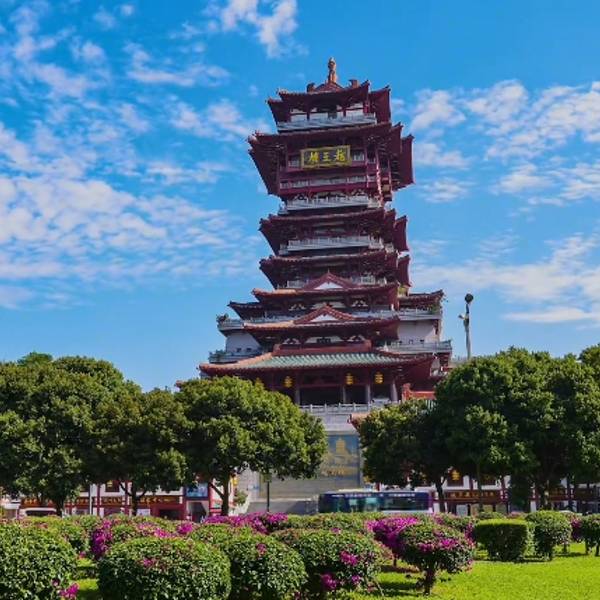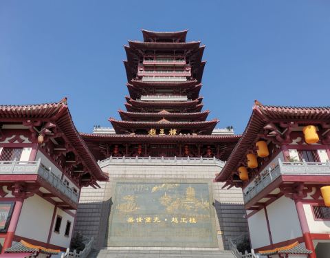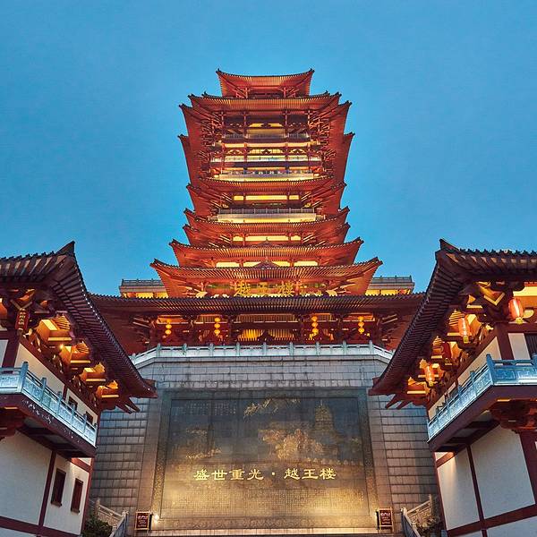 越王楼是天下诗文收录最丰富的名楼,共收录包括李白、杜甫、王勃、陆游等历代大诗人题咏越王楼诗篇多达154篇。其建筑规模宏大,高99米,共15层,为仿唐式建筑。外观气势恢宏,内部装饰典雅,展现了浓郁的唐代建筑风格。楼内设有多个展厅,展示了丰富的历史文化和艺术珍品。