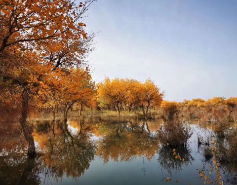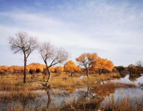 我们去的时候胡杨树还不是很黄,有倒影的地方还是不错滴!
