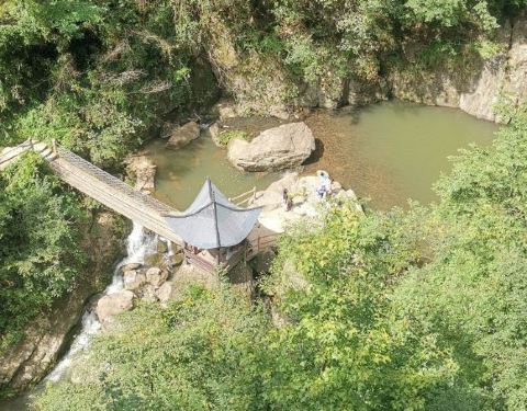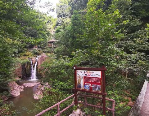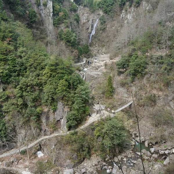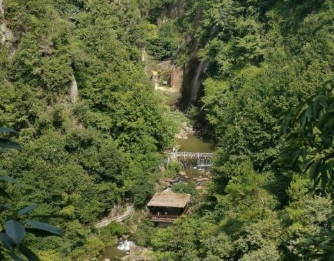 游览栈道俯瞰谷底,植被茂密,山径弯曲,飞瀑溅玉,雅亭翘檐,赏心悦目 展开