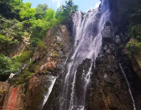 这个是景区最大最有特色的瀑布,很多电视连续剧都在此拍摄,如新版的《还珠格格》,瀑布前负氧离子很...