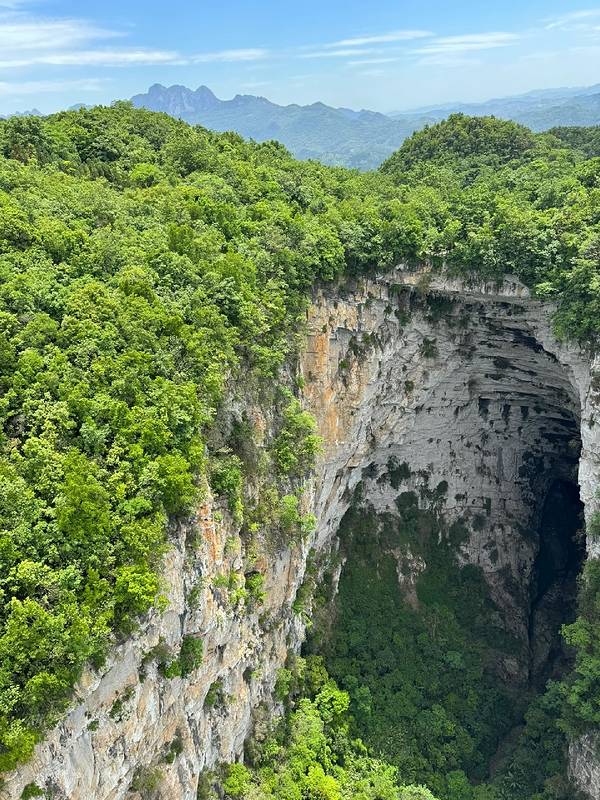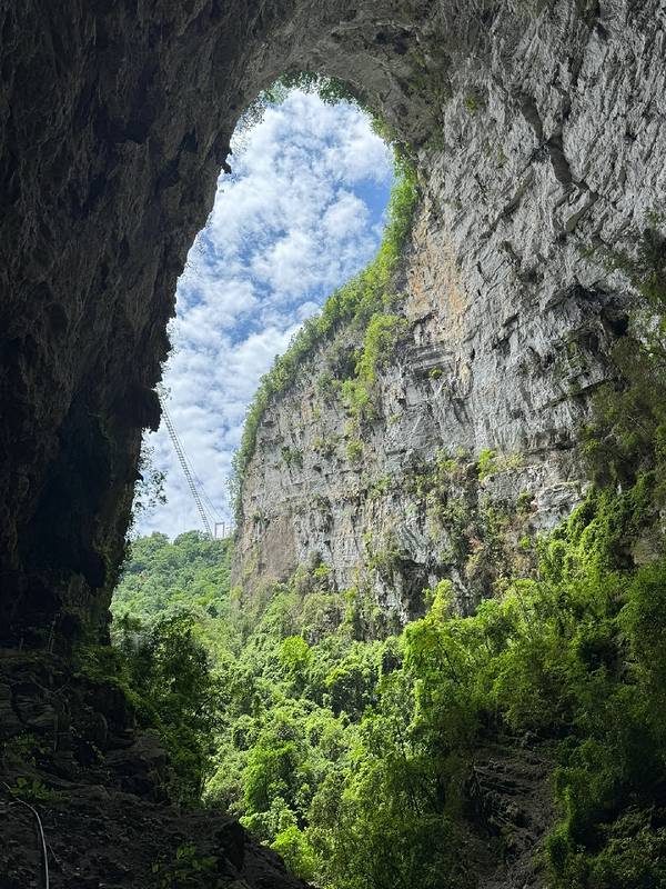 凤凰洞为一暗河型水平溶洞,基本特点可用“高、大、险、奇、绝”五个字来概括。溶洞前洞垂直高度达219 米,堪称国内之最