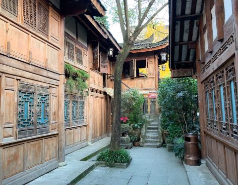 据说阆中古城是特别讲究风水的一个城市,这点在中天楼等地能明显体会到。 一票通的联票里包含了风水博物馆,所以我去看。 实话说,如果是自己花40元买票,我觉得不值。 博物馆并不是很大,收藏了很多易经、卜卦、八卦的用品,一些图文。 这个博物馆主要靠讲解员来讲,自己看不太能看明白门道。 里面也有现场卜卦、解卦的,也有专门的茶座,让师傅们给你讲的。 我个人不太喜欢这些内容,所以很快就走出来。 要说这个风水博物馆有什么好玩的呢,倒不如说它的建筑和园林比较漂亮,开的茶座都很有禅意,比较古朴。 个人信仰的问题了,见仁见智吧