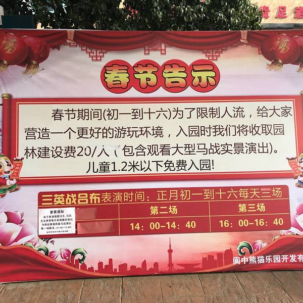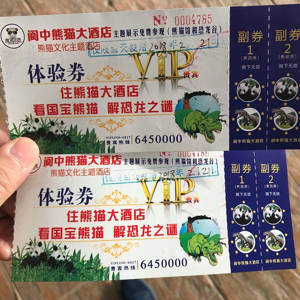 金骆驼 ...猫乐园内的熊猫大酒店,酒店院内设有停车场,有专人看管,第二天也方便直接去熊猫乐园参观,十分方便带孩子来四川看熊猫,恰逢春节假期,熊猫基地人山人海,没有尽兴。听朋友说,200多KM外的阆中有个熊猫乐园,人少还能近距离观赏熊猫,于是不再犹豫,驱车前往。从成都沿着兰海高速在阆中下高速后,大约行驶3KM即...带孩子来四川看熊猫,恰逢春节假期,熊猫基地人山人海,没有尽兴。听朋友说,200多KM外的阆中有个熊猫乐园,人少还能近距离观赏熊猫,于是不再犹豫,驱车前往。从成都沿着兰海高速在阆中下高速后,大约行驶3KM即可抵达。为了方便行程,我们预定了位于熊猫乐园内的熊猫大酒店,酒店院内设有停车场,有专人看管,第二天也方便直接去熊猫乐园参观,十分方便。熊猫乐园,其实就是以熊猫为主题的一个大型的游乐场,包含熊猫馆、恐龙谷以及适合大人和小孩的多种游乐设施,其中不乏跳楼机、激流勇进等刺激性的节目。熊猫乐园平日是实现免门票政策的,只不过春节假期期间,巧立名目的设定了一个“园林建设费”,入园每人20元。除此之外,在园内参加各种娱乐项目,需要统一办理充值卡消费,卡押金10元,出园时可退。参观熊猫馆和恐龙谷,分别收取20元门票。入住酒店,得到了酒店赠送了两张熊猫乐园熊猫馆和恐龙谷的参观券,因此我们参观熊猫馆和恐龙谷,是免费的,另外持票入园,也没有收取20元的“园林建设费”,从这一点来看,还是很划算的。入园以后,可以看到两侧有各种熊猫造型的卡通公仔,正对着的是双层的旋转木马,仿佛回到了小时候的乐园当中。正中间悬挂着很多大红灯笼,烘托着节日的气氛,显得十分的温馨和谐。居中是一个不大的人工湖,湖水还算是干净。湖中有几只黑天鹅,而且并不认生,看着客人上前嘎嘎嘎的叫着要吃的。南充是以三国文化为主要特色的,园内便设有桃园三结义的铜像。从入口处沿着路标步行约1KM,便可以来到熊猫馆的入口。熊猫馆的门口,有工作人员检票。没有票的客人则需要用储值卡刷卡消费进馆。馆内共有两只熊猫,每只熊猫分别有独立的室内和室外活动区域,客人可以近距离参观,而且客人并不太多,因此参观起来还是很方便的。恐龙谷是乐园内的另一处需要独立收费参观的景点。整个馆区分为内外两部分,内部主要是恐龙化石以及相关知识的介绍,外侧则是模拟真实恐龙的热带雨林园区,恐龙皆是装有开关的电动恐龙,头角会不时的转动并且发出叫声,十分生动逼真,小朋友很喜欢。如果带着孩子来阆中,参观古城的闲暇之余,真的可以来恐龙乐园玩玩,个人感觉,这里是很适合亲子游的一个地方。 展开