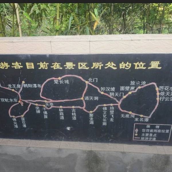 最后说一下游玩时间,一般下来需2个小时左右,不赶时间的可放慢脚步,停于山水之间,甚是惬意4月30日去的,天气佳,中午气温较高.先说门票,网上提前订,一张优惠5元,当天订无效.再说交通,路不是很宽,双行线,停车场很小,去时路一边已停满车辆,变成单行线,进出不便易阻塞交通.车停在坐禅谷门外(见图1,图片来自网...4月30日去的,天气佳,中午气温较高.先说门票,网上提前订,一张优惠5元,当天订无效.再说交通,路不是很宽,双行线,停车场很小,去时路一边已停满车辆,变成单行线,进出不便易阻塞交通.车停在坐禅谷门外(见图1,图片来自网络)步行约3公里到景区大门,一路上有大长坡,很陡(哎,真的很累人).进入景区,心情大好,疲惫顿消不少,风景秀丽,亦是清凉.再说说通天洞(见路线图),此景点易放在最后选择性游玩,适合体力佳者,台阶很陡,很长,能爬到山顶出洞,好汉坡未开放,下山即为返程路,后面景点须折返回来,煞费体力.后面景色大美.最后说一下游玩时间,一般下来需2个小时左右,不赶时间的可放慢脚步,停于山水之间,甚是惬意。 展开