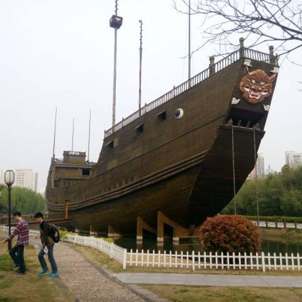 实用 公园的园林景观很好的,树多水清,天气再好一点就完美了。公园里面其实蛮大的,但在外面看不出来感觉公园里面其实蛮大的,但在外面看不出来感觉。交通方面其实不是很方便,公交不多,但地铁4号线通了会好很多吧。有72,133,307这些,时间充裕不妨去宁工新寓走过去,也就十分钟吧。周围小店蛮多,不用担心饿肚子的问...公园里面其实蛮大的,但在外面看不出来感觉。交通方面其实不是很方便,公交不多,但地铁4号线通了会好很多吧。有72,133,307这些,时间充裕不妨去宁工新寓走过去,也就十分钟吧。周围小店蛮多,不用担心饿肚子的问题。门票15,如果没用门票进公园到宝船下面要另收10元。公园是曾经的宝船厂遗址,当年郑和下西洋的宝船就出自这里,现在公园里面的三个小湖是过去的船坞;公园里面有不少文物陈列,都是当年出土的,门口是一口大铜钟,好像有一千多斤,记得铭文写的是洪武年制;展馆里面有一些瓷器,还有一座宝船的桅杆,非常长。公园里面最惹人注目的要数仿制的郑和宝船了,据说当年最大的宝船有5000吨重,150米长,对于一艘木船,即使在今天我也无法想象。不过仿制的宝船自然没有那么大了,而且是不可移动的,也就是一个模型,看上去很有感觉,里面有三层,一楼是各种古代木船的模型陈列,做工真的是惟妙惟肖,据说都是出自大师之手呢。宝船二层除了介绍一些武器之外都是空的,船舱内部坡度很陡,顶头窗外的风景不错;三层就到顶了,桅杆很高。从宝船内部看公园,别有诗情画意。不到宝船面前,还真感觉不到有这么大。制作的水平真是没法说,毕竟大师手笔,品种一直从商周之前到明清,基本是涵盖了中国古代史了。公园的回廊,右边的石刻描绘的是郑和下西洋的场景。公园的园林景观很好的,树多水清,天气再好一点就完美了。