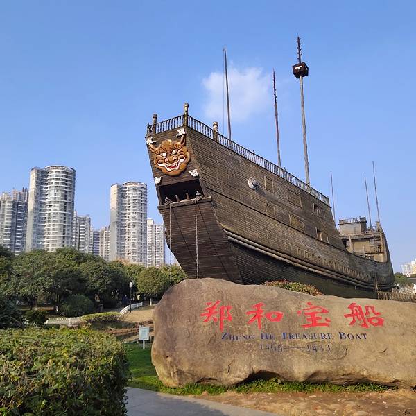 宝船厂遗址公园宝船,是“运宝之船”,是郑和下西洋船队的官船、客船。宝船厂,是明成祖朱棣下令建造的皇家造船基地。宝船厂旧址曾是世界最大的造船厂,而中国古代造船技术也在这时候达到了巅峰。