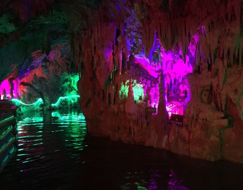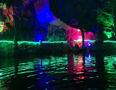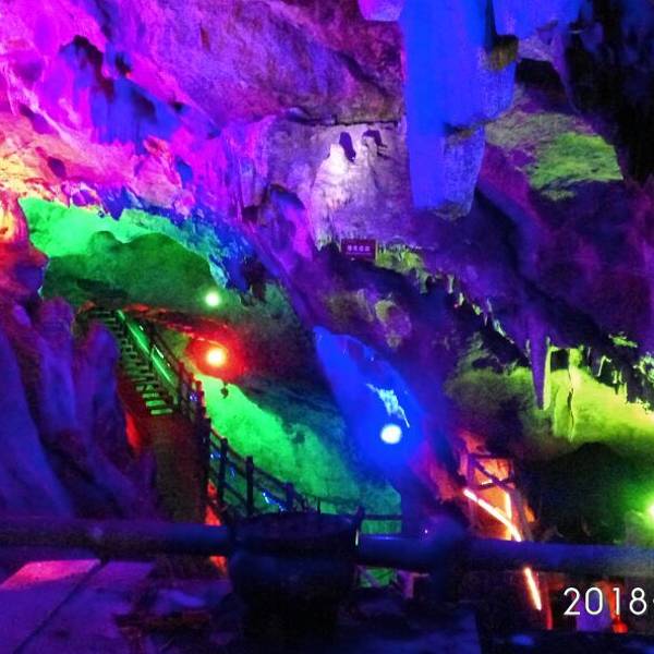 洞前是个湖,可以划着小船慢慢进去,比较有意思。我们去的时候人很少,工作人员说我们可以在湖上划够了在进去,服务真是很到位哦,洞内景色没有特别之处,一般岩洞的风景。