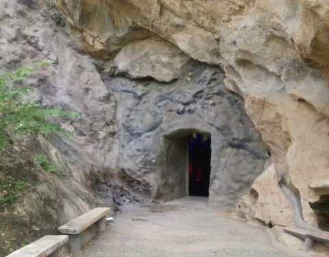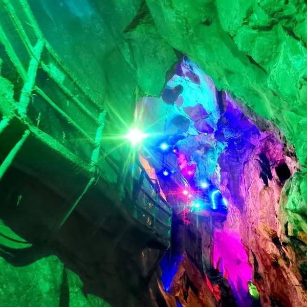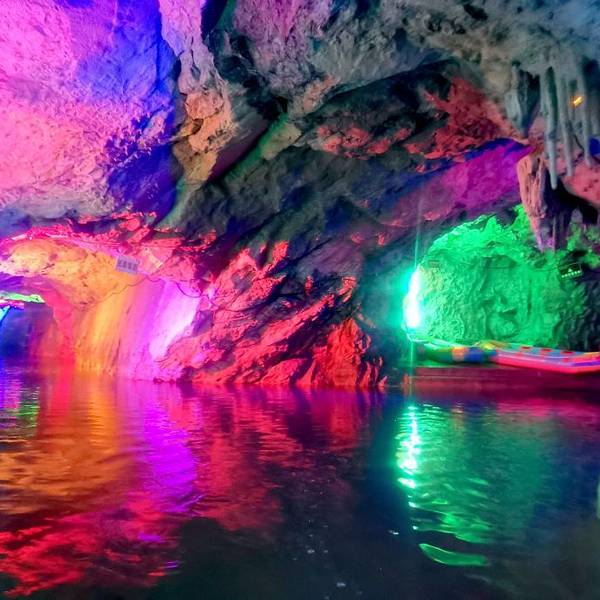 我们去的时候人很少,工作人员说我们可以在湖上划够了在进去,服务真是很到位哦,洞内景色没有特别之...洞前是个湖,可以划着小船慢慢进去,比较有意思。我们去的时候人很少,工作人员说我们可以在湖上划够了在进去,服务真是很到位哦,洞内景色没有特别之处,一般岩洞的风景。