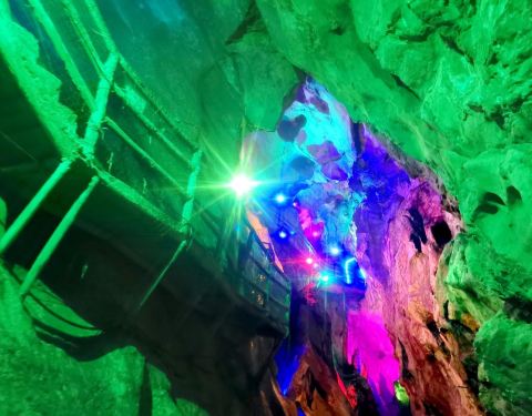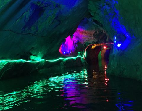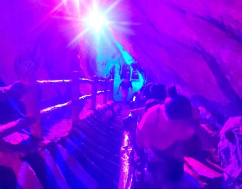 地下河坐船进自己划船🚣♀️,到里面后走路从上边出来。就是一个有水的溶洞不大,前后一个小时就可以逛完。