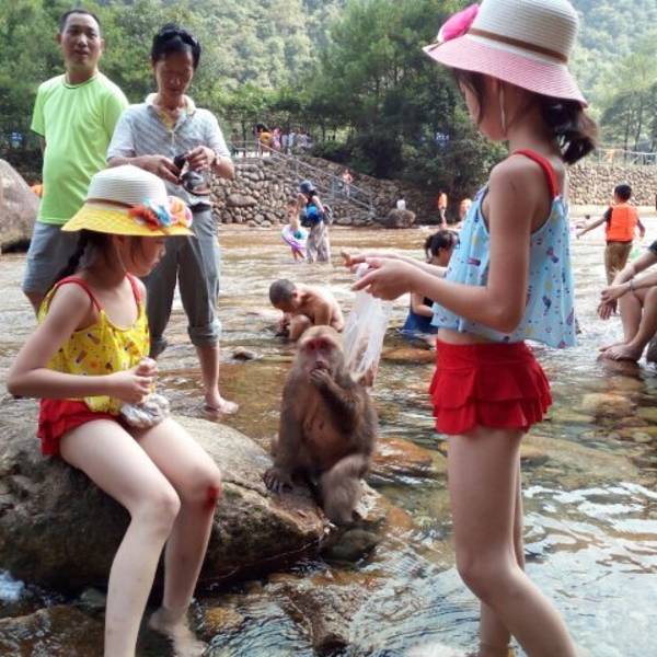 武夷山最值得推荐的夏日游景点这里一点不输白水洋,既有浅水戏水区,也有深水皮划艇区,可以玩水枪,戏水,喂猴子,捕虫子,是夏日孩子们的乐园。这里的猴子和人很亲近,路过的背包客都要盘查一下。武夷山最值得推荐的夏日游景点