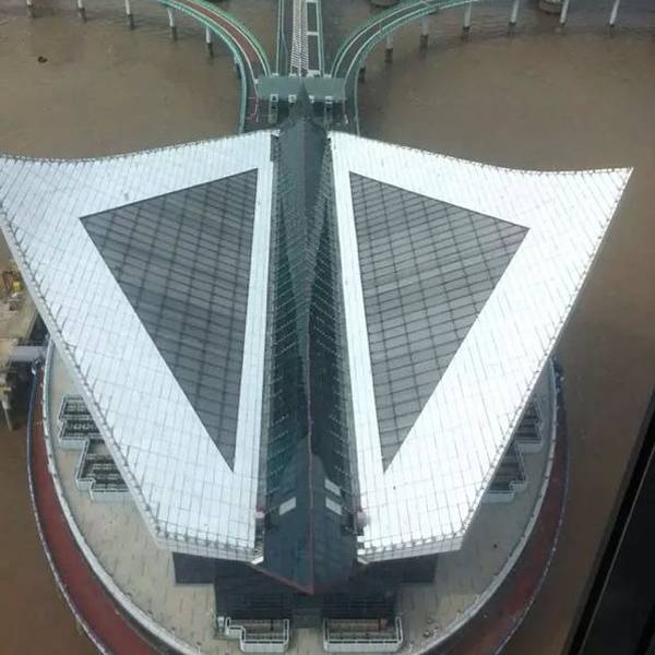 其实观光塔取决于高度可以看的更远,视野更好宁波海天一洲景点位于浙江省宁波市慈溪市杭洲湾跨海大桥上,坐落于杭州湾大桥南航道桥以南约1.7公里的延伸处,通俗点说其实看到海天一洲标志性的建筑就可以知道大桥已开过了一半的距离了。是世界上首个海上休闲景...宁波海天一洲景点位于浙江省宁波市慈溪市杭洲湾跨海大桥上,坐落于杭州湾大桥南航道桥以南约1.7公里的延伸处,通俗点说其实看到海天一洲标志性的建筑就可以知道大桥已开过了一半的距离了。是世界上首个海上休闲景区,所以建设成本很高,可能最早设立的初衷是否有为了大桥应急处理紧急情况、维修、避险的因素在。但如今作为特别的景区,现在完全有了商业价值,自然管理也非常成熟。平台整体以白色和蓝色为主,形似像展翅的雄鹰衔着一颗璀璨的明珠般的特殊外形。总建筑面积达41700平方米,占海域面积12000平方米,主体由观光平台和观光塔组成,底层外围还有飞机停机坪和码头,都可供游客远眺。如是自驾进入,匝道领取海天一洲了停车卡后进入海天一洲二楼停车进行游览。停车费要20元一小时。尽管停车场外面隔着围栏就是大海,景区用磨砂贴纸直接把茶色玻璃给贴了起来,就是让人买门票进去才能看的到海。