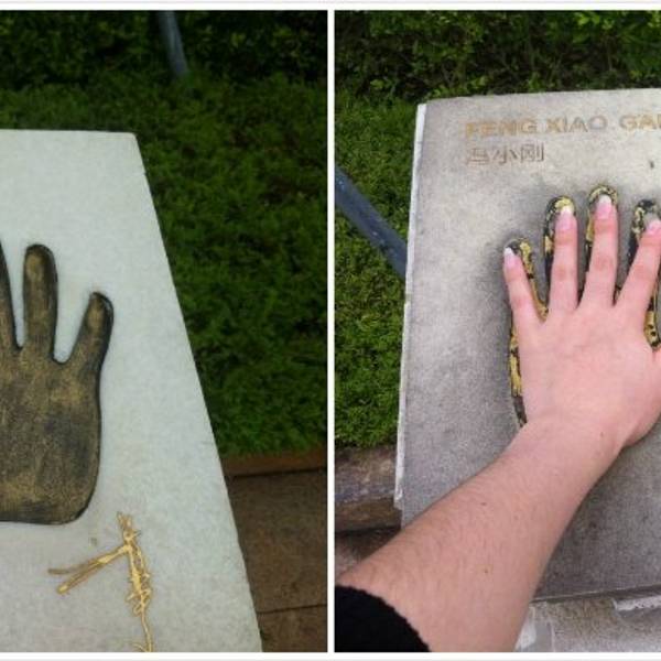 瞬间累的气息都吓没了~一进门先是一段大约百米长的星光大道,大道中两边都是众多明星的手印,据说这些文体娱乐明星都是在电影公社剪彩开业的时候来到这里的,众多明星的手印也让整个景区充满了星光灿烂的感觉。捡了几个喜欢的上图了~ 展开