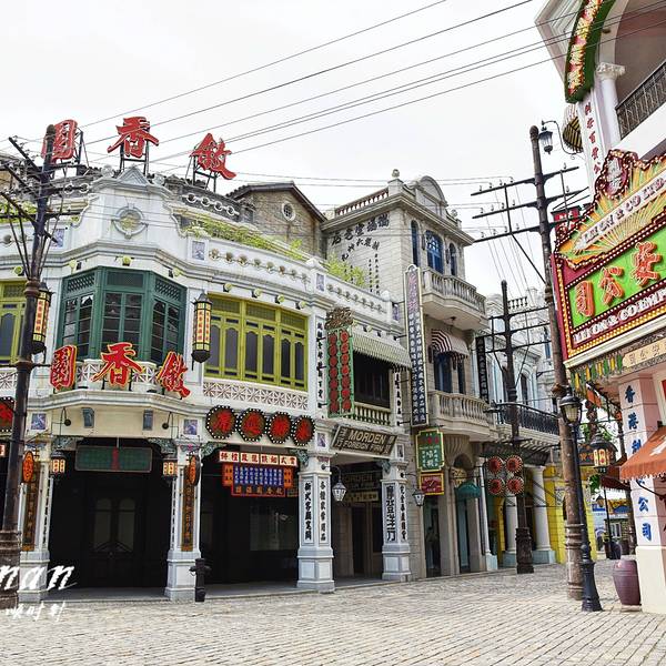 我们先游览了南洋风情街,这里集合了70幢中外建筑风格交流辉映的南洋风格建筑,富有时代感的牌坊、码头、钟楼、小桥、教堂等建筑特别有民国感。出南洋风情街是1942风情街,以冯小刚电影《温故1942》中出现的重庆街道为蓝本,了解那段历史的人行走其间会觉得每一栋建筑背后都有一段流逝的故事。1942街区有不少演艺节目,表演场次不多,不注意很难遇到,1942街区往里走是冯小刚最新电影《芳华》的摄影区,一栋栋建筑转眼间又是上世纪70年代的风格了。走在电影公社的每一条街道,除了感受民国风情和南洋风情五步一景之外,还可以品尝美食,海淘各类工艺品,体验民国摄影、民国鬼屋、3D魔幻世界、蜡像馆等娱乐项目。