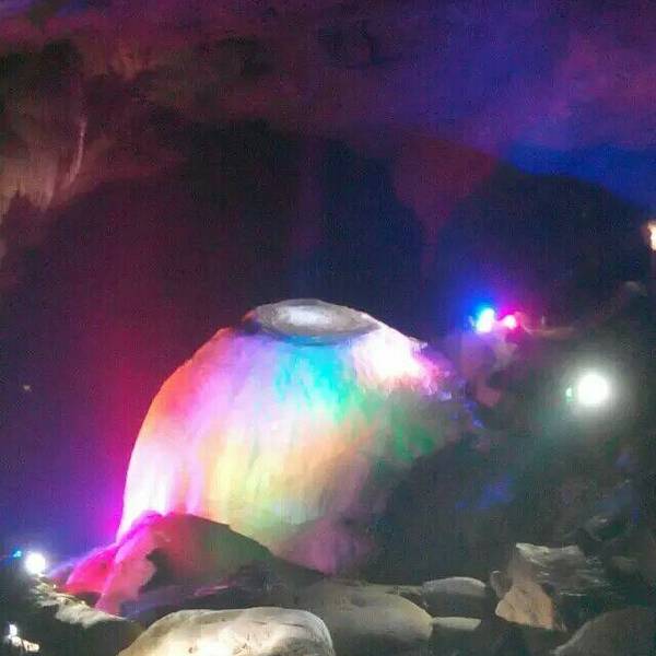 洞内河流纵横,各种钟乳石琳琅满目,美不胜收。在里面参观了一个小时左右吧,我就出洞了。现在,进入龙口雨季的时候这里是瀑布,天然形成的水帘洞,可惜我去的时候是旱季,也不能目睹这奇妙之境了。