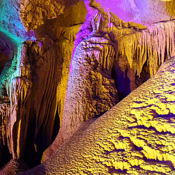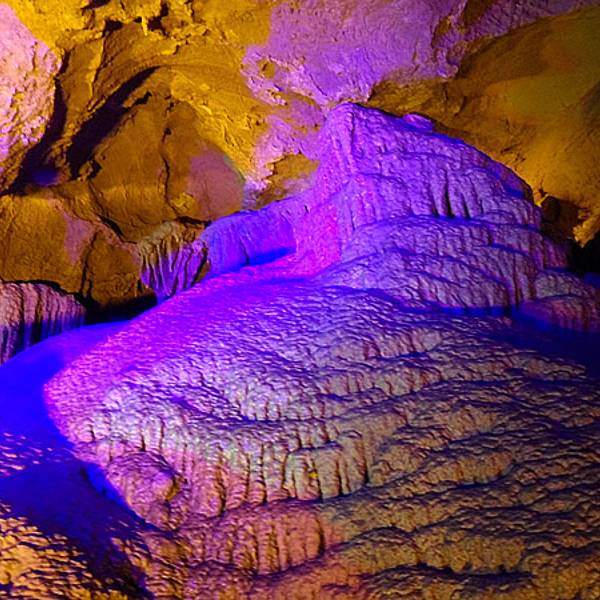 华东地区最大的地下河,最壮观的溶洞。洞内河流纵横,钟乳石琳琅满目。