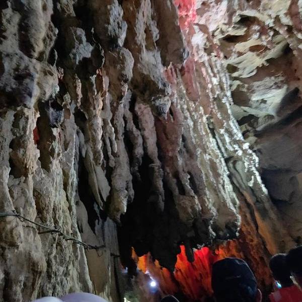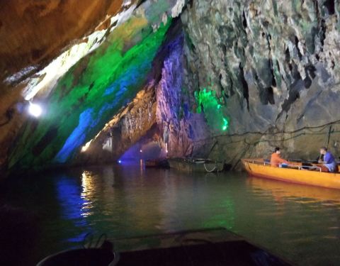 很灿烂的洞里风光,地下河虽然有点小惊悚,但很凉爽,一点都不闷热,就是船有点小,一排坐三个人这都...很灿烂的洞里风光,地下河虽然有点小惊悚,但很凉爽,一点都不闷热,就是船有点小,一排坐三个人这都不是关键,关键是膝盖都挤着前面的人的腰,坐完下来脚都麻了