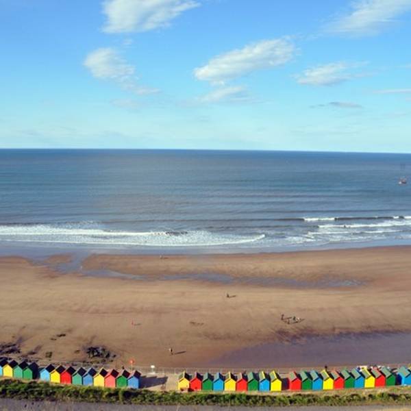 作为一个海边小镇,惠特比自然少不了适合玩水的海滩。东岸是惠特比修道院所在的悬崖,沙滩主要集中在西岸的缓坡之下。沙滩上有一排色彩斑斓的更衣室,形成一道极为亮丽的景观。