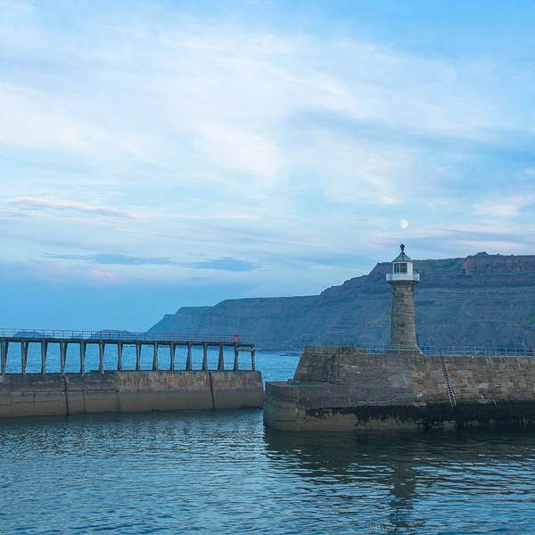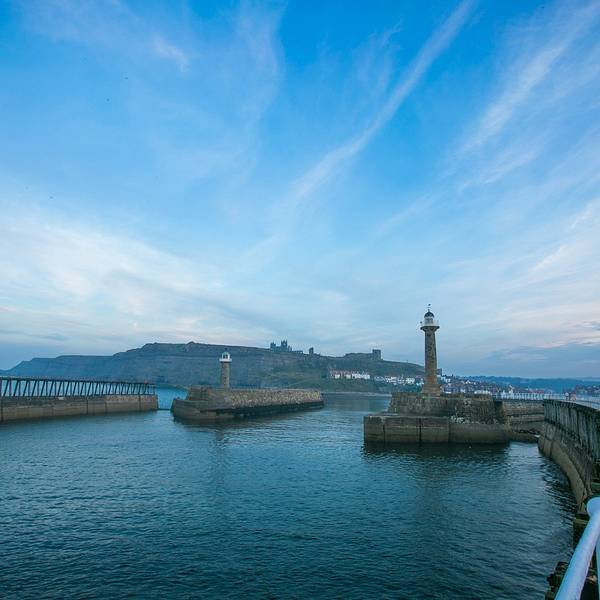 黄昏十分的 惠特比 海边Whitby Harbour徜徉在 侏罗纪海岸 线