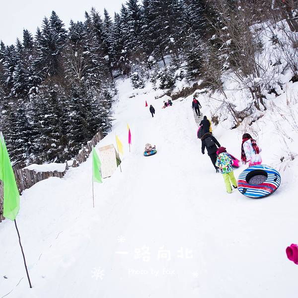 下山之后有个雪乡游乐场,里面有两条雪道可以滑雪圈,可是就看你能不能抢到了,里面的这些都是不要再出钱的了~完了之后去拍拍照差不多就要回去吃午饭准备回哈尔滨了,那天早上下雪,越来越大的雪花,我只当是瑞雪欢送我们吧!中午在此品尝【东北特色农家菜】,感受浓浓的东北风情~