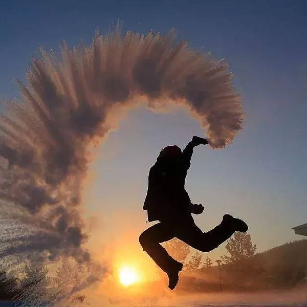 灌了两瓶子水(怕一瓶泼不好 哈哈),准备拍“泼水成冰”~