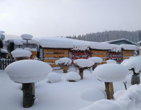 Tips:梦幻家园门票198/人 ,里面是围起来的人造景,真是每一帧都是一幅画。墨镜里面可能含着泪吧Tips:梦幻家园门票198/人 ,里面是围起来的人造景,真是每一帧都是一幅画。来雪乡是一定要去看看的,但是觉得很贵舍不得买对不对?!看我的游记的你就有福了,莫慌,欲知详情请看下文~玉米是真的,辣椒也是真的...Tips:梦幻家园门票198/人 ,里面是围起来的人造景,真是每一帧都是一幅画。来雪乡是一定要去看看的,但是觉得很贵舍不得买对不对?!看我的游记的你就有福了,莫慌,欲知详情请看下文~玉米是真的,辣椒也是真的层层叠叠的雪形成了可爱的雪蘑菇~我们是准备逛完雪乡就返回哈尔滨,所以拖着行李出来的,玩起来很不方便,于是到处找行李寄存,很多店都不接的。