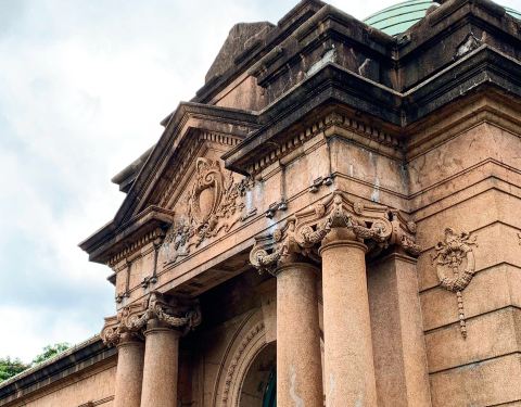 ...的主體建築是台灣少數留存的歐洲古典式列柱的風格,雕刻精美,沈穩大氣,經常吸引新人來此拍攝婚紗照