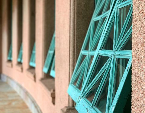 台北自来水博物馆外型仿自古希腊神殿,风格独特精美。 博物馆正面,有一长串半圆弧形的列柱,内部屋架为钢骨构造,窗格以铁件铸造,后方整排的绿色木窗棂。 坐在充满历史痕迹的洗石阶梯上,斑驳又带点裂痕的...