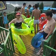 平坦快捷的景区道路、醒目的指示牌引领我们直达景区大门,到售票区很方便的换取了5套套票【全部是赠票呀!】,快艇、画舫、高空滑水、游乐场、清澈见底的分区游泳池......,绝对物有所值! 中午在景区的农家乐用餐,干净卫生,服务周到,价格实惠,做的木火熬鱼味道鲜美! 提几点建议:1、加强景区管理,亟待提高服务水平,上下船拥挤,缺乏引导、没有秩序。 2、画舫游船一定有核定载客数,不能盲目上人,出现颠覆,后悔莫及。 3、很好的景点,一定注意保护好水资源,村民、饭店乱排废水会导致灾难性的水源污染后果。 4、高空滑水的滑板可以采取定向滑轮的运输方式,省时省力以满足游客需求。 5、淋雨增加太阳能热水,彰显人性化服务。 6、加强外围宣传,扩大景区规模。