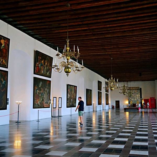 克伦堡宫意为“皇冠之宫”,位于哥本哈根北部的要塞小镇赫尔辛格,毗邻丹麦和瑞典两国间的松德海峡,是欧洲文艺复兴时期较重要的城堡之一,也是莎士比亚名剧《哈姆雷特》著名的背景地,故又称为哈姆雷特城堡。2000年它被列入世界文化遗产行列。 它的历史可以追溯到1420年,丹麦国王弗雷德里克二世于1577年正式将其命名为“克伦堡”。宫殿用岩石砌成,褐色的铜屋顶气势雄伟,巍峨壮观。在宫外院的墙上有一块莎士比亚的纪念浮雕像,相传当年莎士比亚就是以此为背景写下了那不朽的悲剧《哈姆雷特》。每年夏季,在这里都会举办一系列以《哈姆雷特》为主题的特别活动。有兴趣的可以参加每天中午12:30开始的“哈姆雷特”主题导览游,票价为50克朗。 宫殿内部现在主要作为博物馆对公众开放,陈放着大量的古式家具、油画、挂毯、木雕。国王与皇后的两间卧室装修极其精美豪华:华美的门庭、油画天花板、大理石壁炉都很值得一看。 宫殿内的舞厅是北欧较大的宴会厅,黑白相间的大理石地面,华丽的水晶吊灯,周围的墙上悬挂的画作可以追溯到17世纪。 位于宫殿底层的地下工事现在也对公众开放,国王寝宫曾修筑有通往此处的密道。战争时期,这里曾被用来秘密训练士兵和抵御外敌。地下工事内安放有较受欢迎的雕像——名为“丹麦人霍尔格”(Holger the Dane)的青铜雕像,这位丹麦传说中的英雄人物身穿戎装,抚剑坐睡。相传战时他曾立下汗马功劳,后来虽无战事,但睡觉时也保持坐姿,以示警戒。