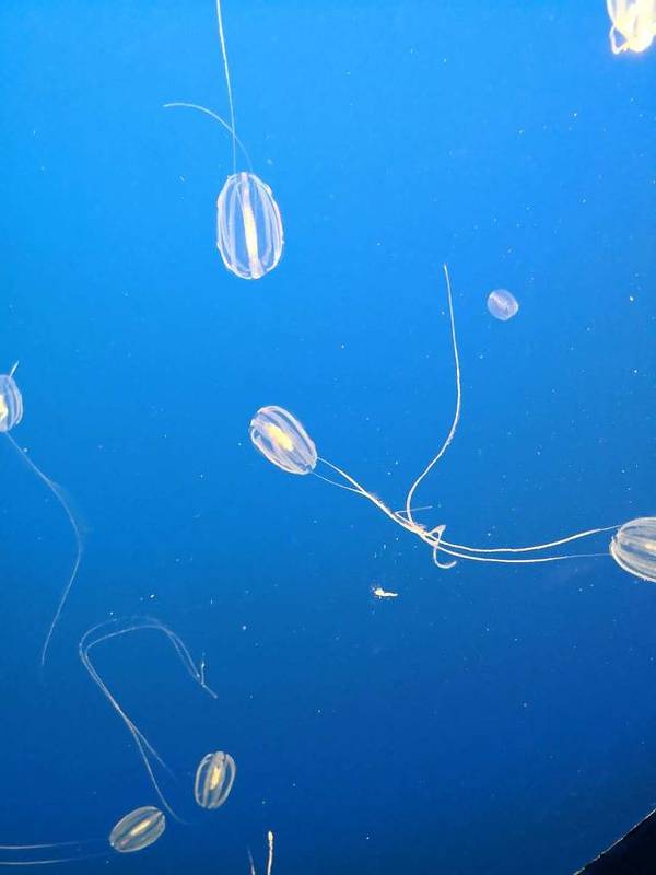 这个水族馆里面有非常多的各种海洋的小鱼或者是水母,而且它们都被装在非常好的水族箱里面,而且由于人挺少的,所以可以很近距离的观看他们。