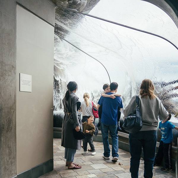 最初,【蒙特利湾水族馆】并不在我们的旅行清单中。早晨我们沿着罐头厂街瞎转悠,蒙特利湾水族馆居然大排长龙,了解才知这里号称北美最大水族馆。亲子旅行,我相信不会错过这个科普,梦幻,好玩集一体的水族馆。这里也是窥探这个瑰丽迅变之海底世界的一个窗口,6500种海洋生物,300000只以上的海洋生物在馆内用各种逗趣的方式展出。⬇门票可以选择现场买,成人50刀,儿童30刀(3-12岁)。也能在平台上购买,会便宜一些,现场就出票了。⬇大厅里,还保留了一些老罐头厂的机器和历史介绍,从臭名昭著到缤纷多彩,完成了华丽的变身。水族馆分为巨大的“海草森林区”、“哺乳动物区”、“砂洲暗礁区”、“深海区”及峻石磷璃的“沿岸动物区”等,还有一座专开的“海獭栖息馆”,“海潮区”展示海星和海葵供游客触摸。 由浅水滩到开放的海洋生物,大小鱼群悠游在大水池里,各式各样的水母在水中曼舞,小水箱里孤单的蓝扁鱼,躲在洞口里的斑纹鳗,好玩又逗趣的水獭......还有小朋友最爱看的企鹅,想象力在这里瞬间变得丰富起来。⬇蓝色沙丁鱼风暴⬇眼花缭乱的水母舞蹈⬇比指甲盖还小的水母⬇不停张嘴的小鱼⬇虽然语言不通,“ 泰山 ”也在这里认识了不少小伙伴,奔跑,欢笑以及一连串对话后,互相的发呆,摸摸小手,都是另人“羡慕”的经历。 “ 泰山 ,你得好好学英文,这样就能听懂其他小朋友说话了。”妈妈总是无时无刻表现出对儿子学业的担忧。⬇小鸟体感游戏⬇展厅内还有许多和艺术相关的展览,水下摄影,贝壳的工艺品,塑料瓶堆砌的图案,都旨在保护海洋生态环境,这也是很好的寓教于乐游玩方式。 “爸爸,塑料瓶不能乱扔,要扔进垃圾桶里。” 我的老脸一红。⬇从人山人海的馆内出来,是一个与太平洋对话的平台。这里还提供了望远镜,但难以锁定到天空中为数不多的海鸟。平台营造了一个摆脱喧嚣的环境,哪怕片刻,也足以。情理之外,意料之中。蒙特利湾水族馆你无法做到与它只是擦肩而过,也无法只是匆匆一瞥,谁也不想打断这美妙的亲子时刻,后果,便是晚上12点才疲惫的转动着方向盘,驶入 圣巴巴拉 。所以我又不厌其烦的写到 一号公路 的住宿,真的不用提前订好,随遇而安吧,因为这里太多的奇遇会让你的计划变得“一团糟”。Tips:蒙特利湾水族馆经常会定期举办一些活动,如果想参加,建议提前在网上查询好活动时间和地点,具体可在以下网址查询:Monterey Bay Aquarium。
