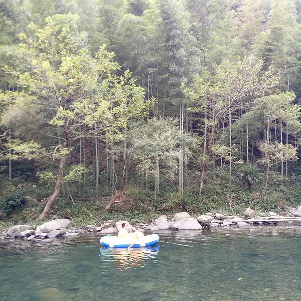 下了山,在漂流点附近的土菜馆吃了一餐徽州性价比最高的家常菜,稍事休憩后,出发漂流。