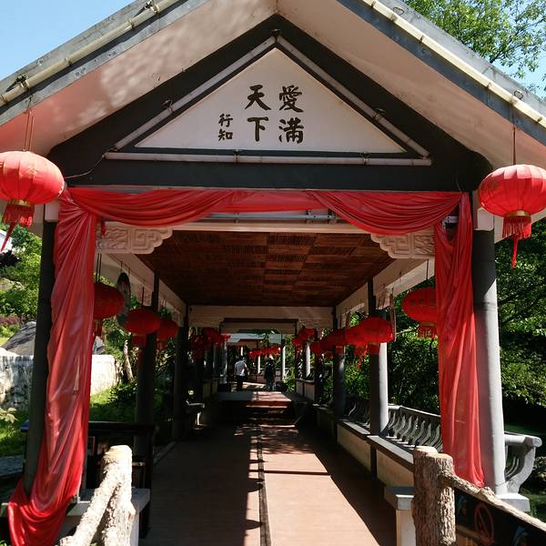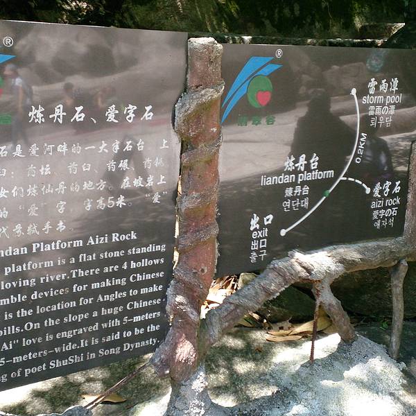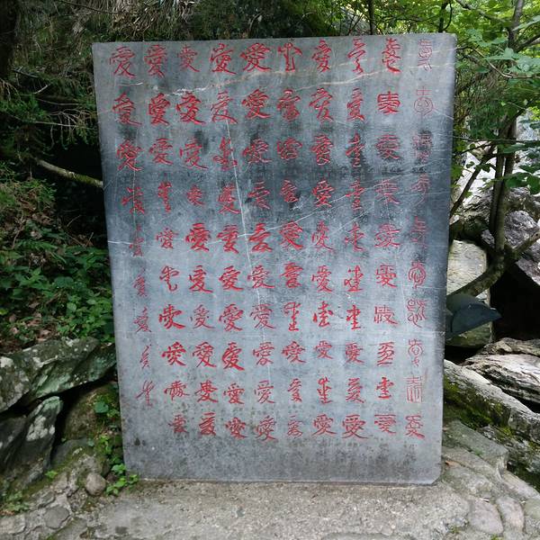 翡翠谷有名“情人谷”的主题确实处处存在:入园前青石板上刻着的不同字体的“爱”、情人桥、鹊桥、爱亭、恋亭、爱字石……一路的浪漫哦!