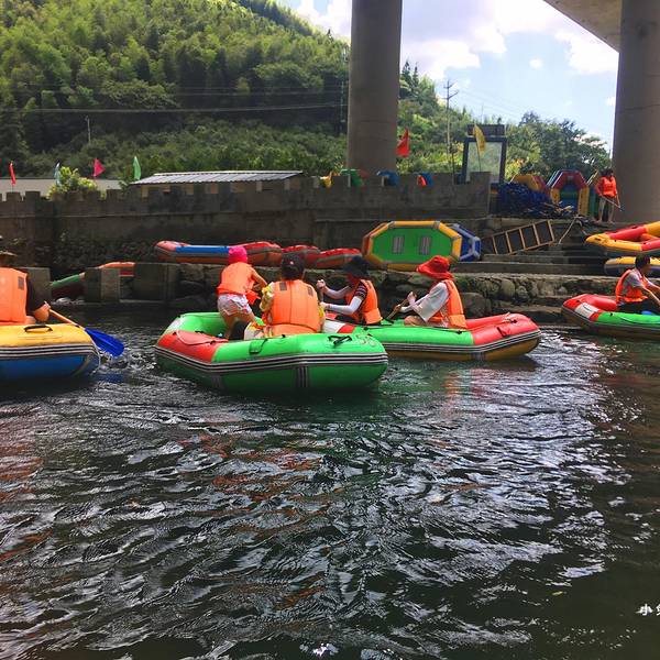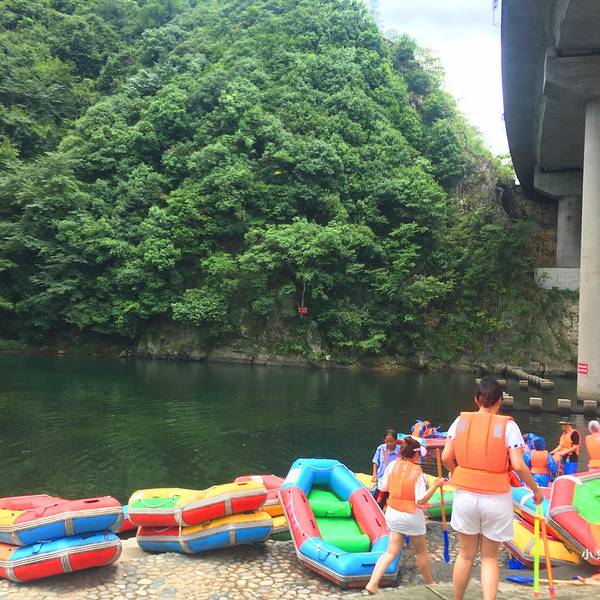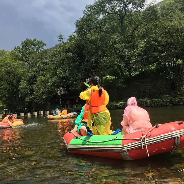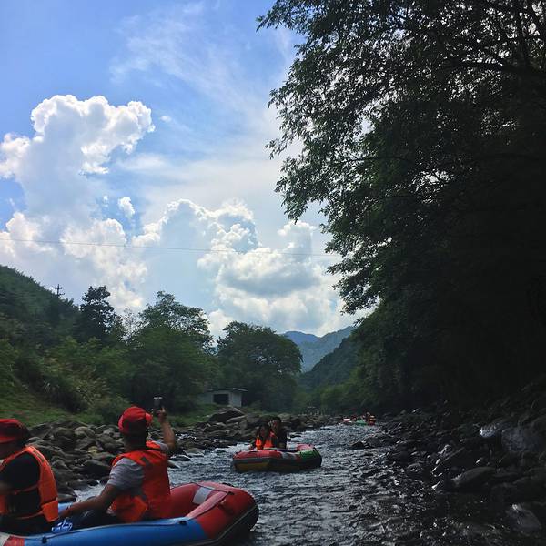 下雨时我非常的绝望,什么挡雨的东西都没有。【建议游玩时间】2小时香溪漂流以河流水景为主线,集漂流、冲浪、戏水、山乡风情、自然生态、徽州民俗于一体。沿途河道蜿蜒曲折,驾艇漂流香溪河,在时而湍急、时而平缓的水流中顺流而下,体验驾驭乐趣。 我们体验的两个漂流都是老少皆...香溪漂流以河流水景为主线,集漂流、冲浪、戏水、山乡风情、自然生态、徽州民俗于一体。沿途河道蜿蜒曲折,驾艇漂流香溪河,在时而湍急、时而平缓的水流中顺流而下,体验驾驭乐趣。 我们体验的两个漂流都是老少皆宜,有平静、有急流。漂流之前一定要吃饱,因为这是一项很消耗体力的运动,在没有急流的地方是要自己划桨的。途中景色非常美,我们置身于山林之中,山里的蓝天、白云等各种景色都能把你迷住。