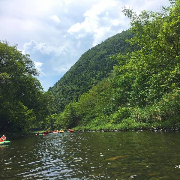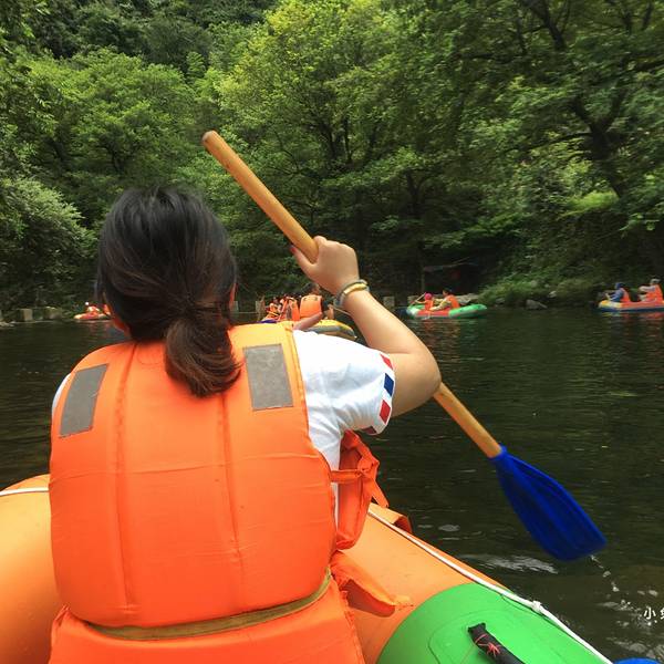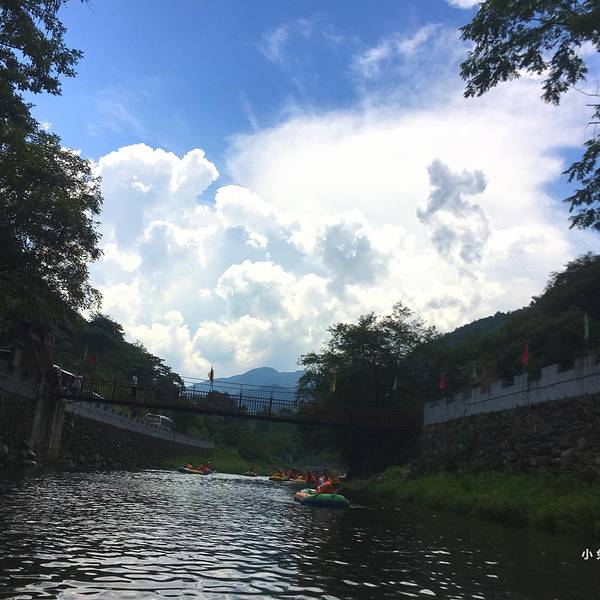【注意事项】漂流时不要带贵重物品比如相机、手机、钱财等。如果要带手机可以买一个防水袋。一定要多带几套衣服和拖鞋,因为会浑身湿透,也可以带泳衣这样会很方便。景区有换衣服和寄存东西的地方,救生衣一定要穿,不要在途中下水嬉戏,注意安全。坐了半天的车,终于来到了景区门口,之前一直看天气预报说是有阵雨。下车后,抬头看天空真的有大片乌云,时不时还有雷声响起,我就在祈祷千万不要下雨。我们被山林包围着,空气十分清新,城里看不到这样的景色。这是我第一次漂流,检完票后,我们就去穿救生衣了,救生衣湿漉漉的。穿好救生衣,拿上浆和水枪,我们准备上皮划艇了。第一次漂流有点紧张,纠结了一会才上皮艇。坐上皮艇之后,我们一直在原地打转,不会用船桨。我和朋友在不停的摸索着,在转了n多圈之后,皮艇终于向前走了。在没有急流的时候,是要自己滑的。慢慢地我们进入了森林,身边只有绿水和青山。溪水时而深,时而浅,在浅水滩的岸边会有一些石头,我们的船桨不听话,总是把我们带到岸边,然后我们就搁浅了。幸好有别的船只帮助我们,我们才又漂了起来。才划了半小时左右,突然就下起了倾盆大雨,山里的天气变幻莫测,望向远处却依旧是蓝天白云。下雨时我非常的绝望,什么挡雨的东西都没有。这时还有一个小朋友雪上加霜,拿水枪喷我,当然我也不会示弱,立马反击了她。就这样我们在大雨中划行了15分钟左右,这样的过程令人难忘。终于天空放晴了,阳光洒在水面上波光粼粼,溪水很清澈,能看见石头和小鱼。因为漂流不能带相机,我全程都是用手机拍的,有些照片还是在混乱的情况下拍的,拍的不好的照片,大家不要介意。经过几轮激烈的漂流,我的皮艇里都是水,裙子也全湿了。所以大家一定要多带几套衣服和拖鞋,我建议可以直接穿泳衣。感觉就这一会功夫,我的脚就被晒黑了,怕晒黑的小伙伴防晒措施也要做好。不知不觉到了漂流的尽头,流水突然变得湍急了,皮艇就像溪中的一片树叶不受控制,旋转着下去,十分刺激。这时看到远出的白云就像棉花一样,很想伸手去触摸一下。我们在岸边挣扎了很久,眼看岸就在眼前,却一直无法靠近,我也很绝望呀。终于准备上岸了上岸后,我们去换衣间换干净的衣服,换完后我就站在桥上,看着漂流的人们在溪水里打着水仗,十分有趣。远处的天空被白云铺满了,这是一个不一样的下午时光,没有咖啡,没有追剧,没有wifi······但是有青山,有绿水,有蓝天,有白云,我亲近了自然,体验了不一样的娱乐活动。 展开