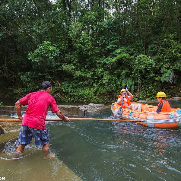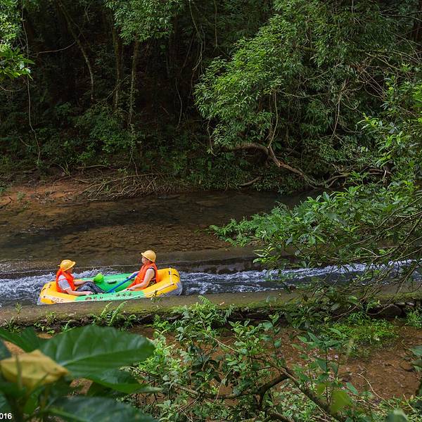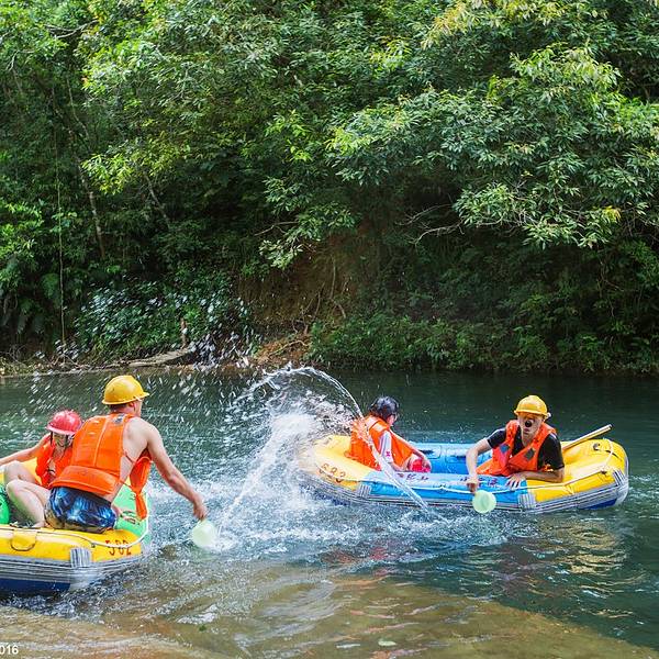 景区内旅游资源丰富,山高林密,聚泉成流,生态环境尤为竣秀。空气负离子高达10万单位/每平方厘米以上,堪称一个天然大氧吧。       漂流河道九曲十八弯,蜿蜒环绕在青山之间,漂流全程约7公里、大小落差20余处。碧波荡漾,水流湍急,自然推舟漂落,有惊无险,安全刺激。确属您挑战自我、体验激情之理想场所、堪称“粤东地区最佳生态漂流”!