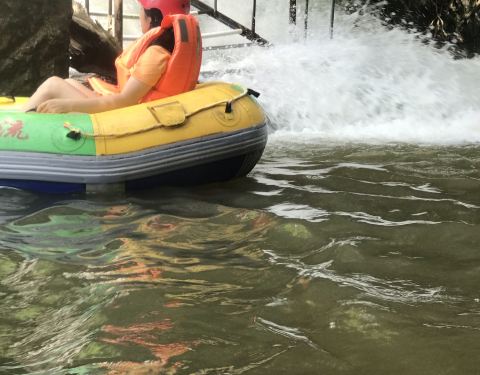 平安峡漂流前段滑洞落差好过瘾,一路都可以尖叫,后面水落差大平,又没有船桨,只用放在那里的绳子拉,手都拉到疼。望每船加个船桨,水道短了点,没有一个钟头就玩完。总的来说这次漂流是开心的:。