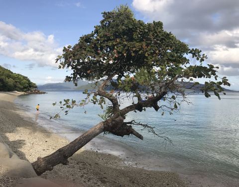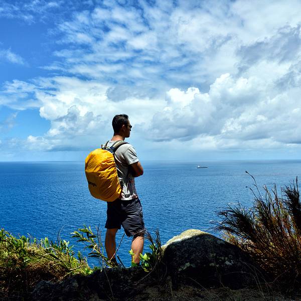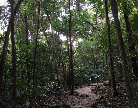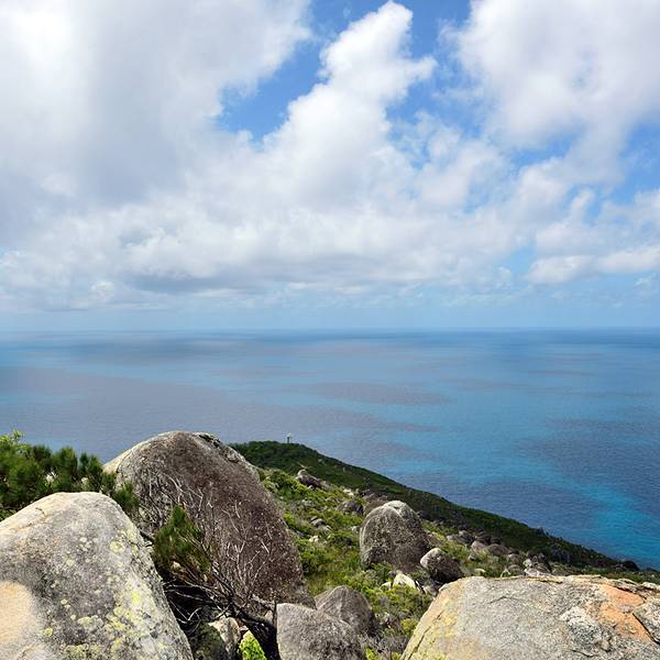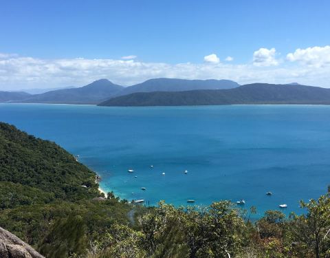 ...走了大概90分钟后,我爬到了岛的最高点,果然还是值得的,风景无限美好,也不枉费我几乎走到抽筋了Fitzroy Island,被翻译为『翡翠岛』,就如同它的名字一样,像一颗翡翠镶在大堡礁上。