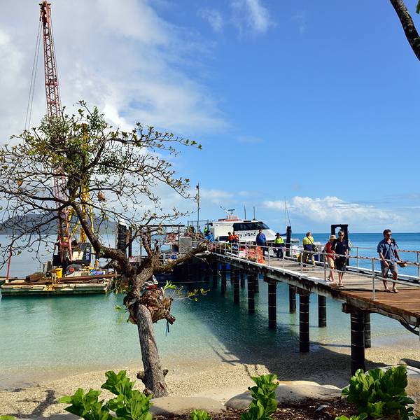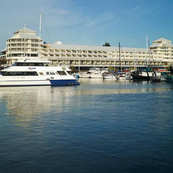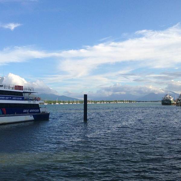 一大早到码头,到处都是要去大堡礁的游客,不过也没有花多少时间找到了我要搭的船,出发时间是8点整,大概1小时后抵达距离凯恩斯大约40公里外海的翡翠岛。