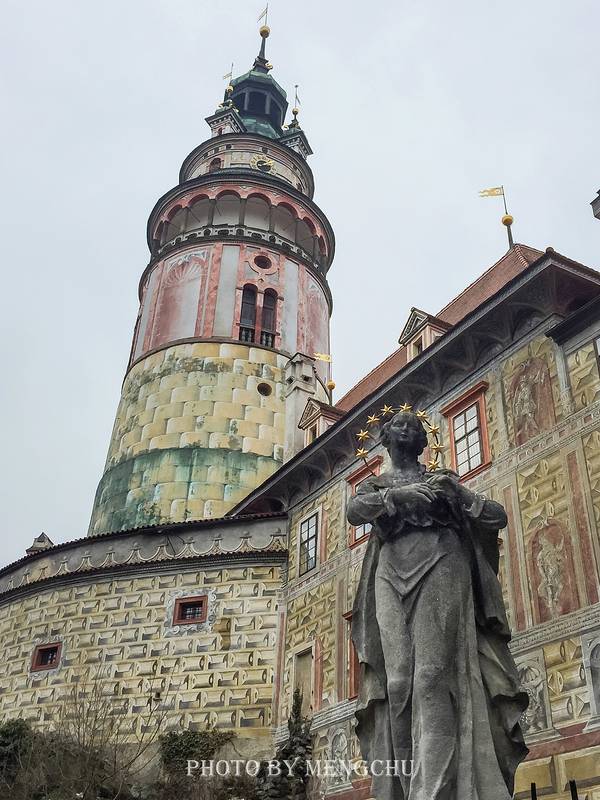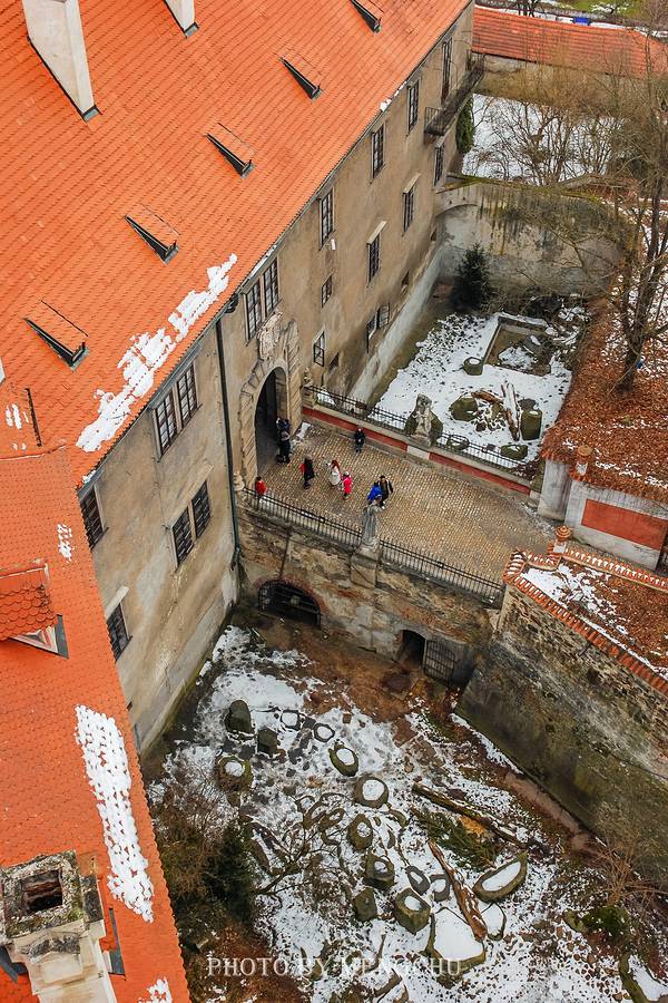 攀着窄仄的楼梯上到塔顶,登高远眺,美景尽收眼底,果真不负世界上最美小镇的盛誉14:30 捷克克鲁姆洛夫城堡Státní hrad a zámek ?esk? Krumlov