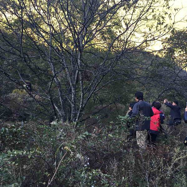 下车后再往山里走大约15分钟就可以看到猴子了。观猴区域内一共有大约60只滇金丝猴,分为两个猴群,一个是由一只大公猴带领的常规猴群。而另一个猴群比较特殊,是一个“全公”猴群,是由那些还未或者已经不能建立起自己猴群的公猴组成的。这里是公猴的养老院,同时里面的年轻公猴未来也可能成为一方的霸主。 展开