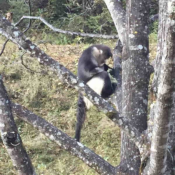 景区在山上,门票100,工作人员随车带我们上去的。和想象的不一样,不是金色的猴子,而是黑白相间的毛色11月去的,从松赞酒店出发也就是10多分钟。景区在山上,门票100,工作人员随车带我们上去的。如果春夏时节,看到猴子要走好远,我们那天很幸运,进景区没200米车程,就看到好多游客聚拢在树下。和想象的不一样,...11月去的,从松赞酒店出发也就是10多分钟。景区在山上,门票100,工作人员随车带我们上去的。如果春夏时节,看到猴子要走好远,我们那天很幸运,进景区没200米车程,就看到好多游客聚拢在树下。和想象的不一样,不是金色的猴子,而是黑白相间的毛色。据说4个月以下的小猴毛是灰色的。金丝猴猴群没有猴王,有几个家庭组成,我们看到的是“断指”他家。十多只猴子在树上找吃的,长长的树须样的叫做长松萝。护林员除了看护猴子,还要保证他们不掐架。据说动物园看不到这种猴子,全国也仅有2000只了。值得去! 展开