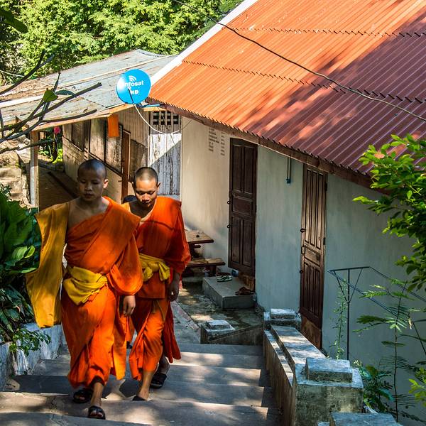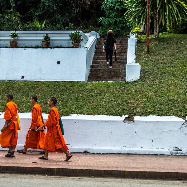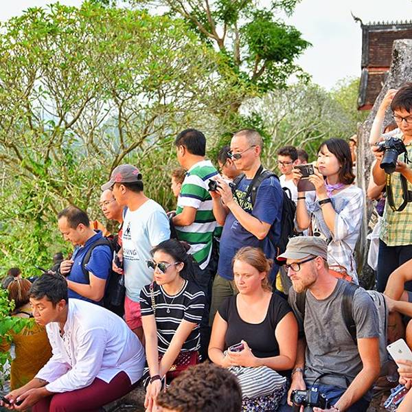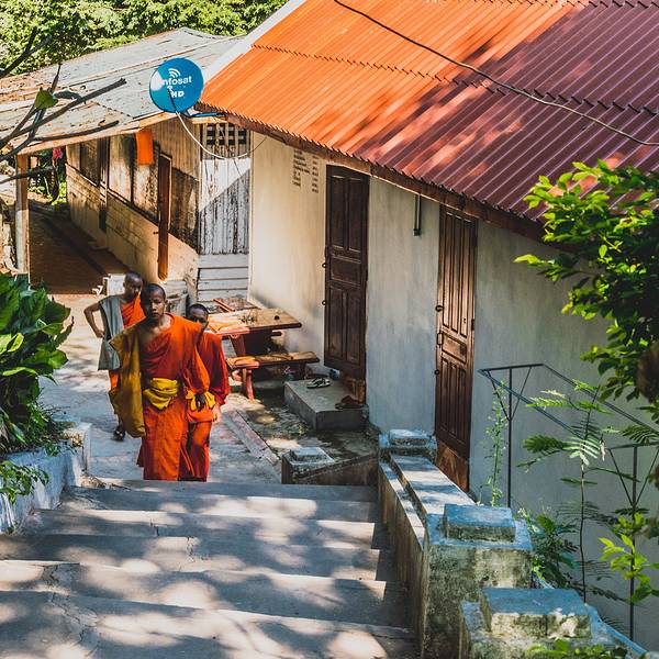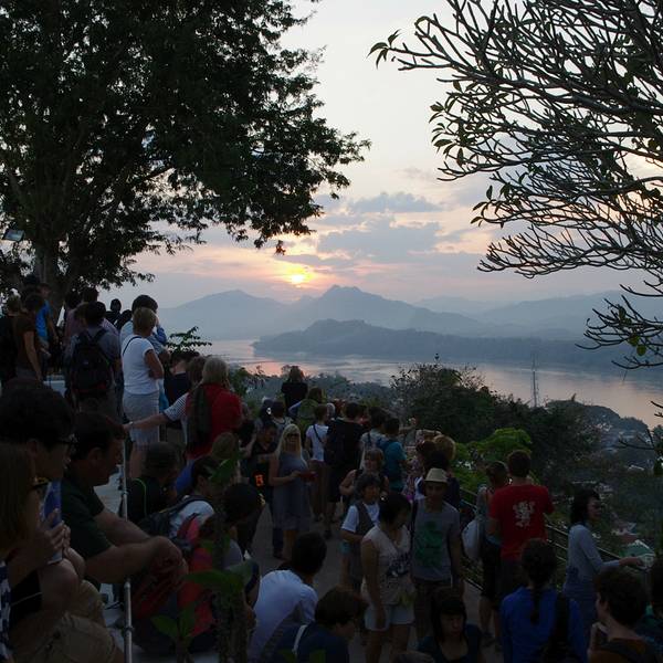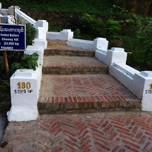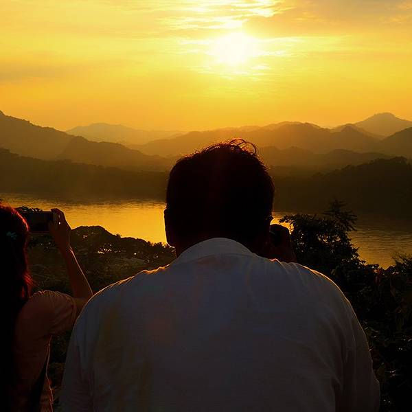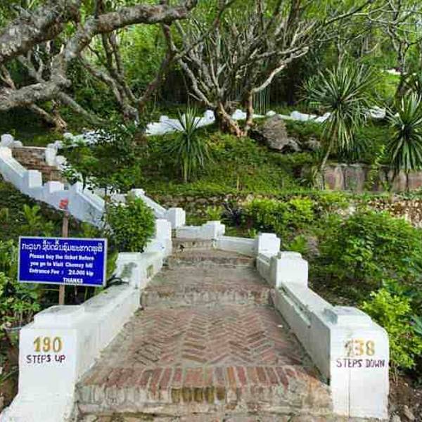 俯瞰琅勃拉邦的最佳地点,沿途寺庙林立,在山顶观赏日出日落最为吸引人。