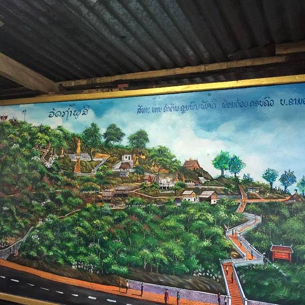 金骆驼 要想登山可是要花钱的,普西山的售票处在半山腰上,要是你爬了几步才知道这个事实,你的心情恐怕会...闷热又暴晒的中午路上静悄悄的,附近恰好有家中餐馆,进去吃了碗面条当做午饭,不过是老挝人做的中式面条,味道尚可,就是实在没有卖相,虽然拍照了,不过还是不拿出来寒碜了。