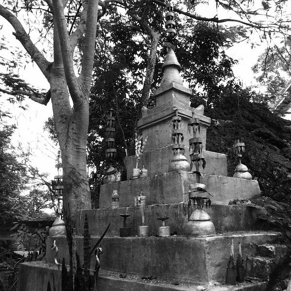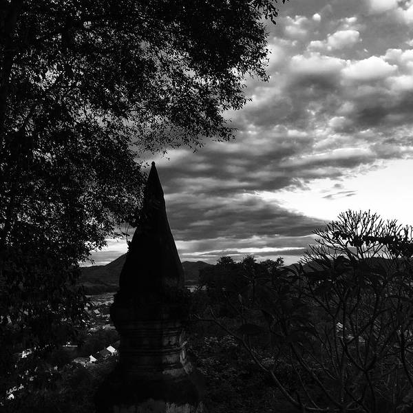 普西山的位置就在古城中心,基本都可以步行前往,是琅勃拉邦少数需要收费的景点,早晚没上班的时候不需要门票,基本工作时间都有售票员把关,门票20000Kip一个人,约等于人民币16块钱,基本只能使用老挝币付钱,由于门票售卖处在半山腰,所以建议大家检查号荷包在上山,因为我和小伙伴就是走上去发现没带钱才又下来找ATM机~~~~(>_<)~~~~ 特别可怜,而且还目睹了国外的小伙伴使用美元付款无果的事实,最后附上门票图片。整体行程中不太会遇到中文,比起泰国对中国游客的依赖,这里基本还只是欧美人的天下。这是千山的全景图,基本没有太多山路和转弯,用不多时间就可以登上山顶,而且据目测大部分小伙伴都是从后山上,大概是因为夜市那条街道作为主干道的优势吧。其实建议大家下午登山的话还是可以考虑前山上,这样下山之后刚好可以去夜市美餐一顿,在购买一些喜欢的手工艺品。接下来是我最喜欢的几幅图,都被我调成了黑白,不知道为什么,总感觉如此历史悠久的景色只有单色才能展现出她的震撼,虽然略显压抑,但是也独有一份王朝的沧桑之感,希望喜欢的小伙伴可以找到一些共鸣。大爱,不解释炮台和佛像,战争与和平。Ending还是来一张原张的收尾。