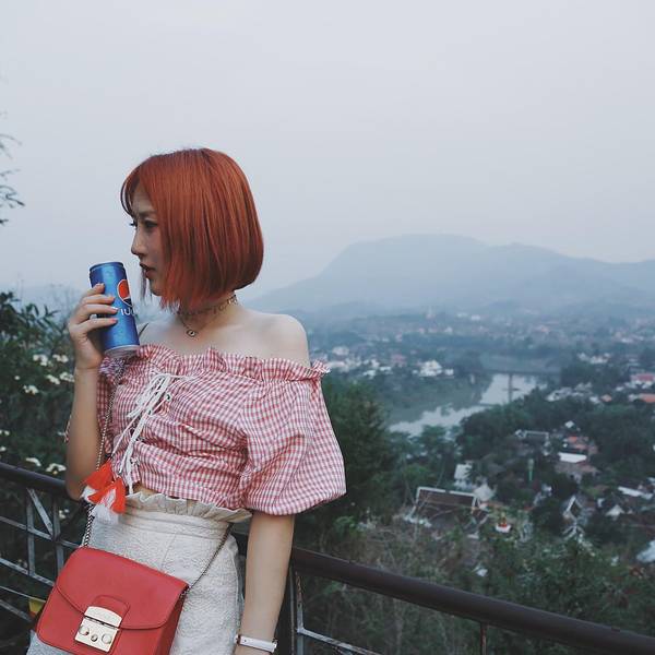 但精美的雕刻充满了禅意,依旧古老美丽,曾经雕纹鎏金璀璨,整体和谐优美,隐在山间,保留着幽静清雅的氛围在我们到达琅勃拉邦后,时值傍晚,眼下正好可以去浦西山一睹日落美景。山的入口位于皇宫博物馆的对面,海拔不过100多米,爬起来也并不是想象中的那么轻松,走过没几步台阶,我就已经气喘吁吁,看来还是平时缺少锻...在我们到达琅勃拉邦后,时值傍晚,眼下正好可以去浦西山一睹日落美景。山的入口位于皇宫博物馆的对面,海拔不过100多米,爬起来也并不是想象中的那么轻松,走过没几步台阶,我就已经气喘吁吁,看来还是平时缺少锻炼。售票处是一张小桌子,什么都没有,售价2000kip,也就rmb几块钱,来自世界各地的游客和我们一样,不约而同地聚集在山顶,等待一天中最美好的时刻。山顶的宗西塔在夕阳下闪着金光,这是属于澜沧王国的历史烟云。站在山顶,在一侧俯瞰琅勃拉邦全城,一座座红色屋顶的小房子夹杂连片绿色的热带植物中,虽然不是车水马龙繁华之景,却充满了浪漫的烟火气息。落日了,一天中最辉煌的时刻,快门声纷纷响起,粉橘色的光倾泻在湄公河上,残阳温柔地退至群山背后,远处的山峦逐渐与天空融为了一体,地平线随之模糊,不由得想到“落日熔金,暮云合璧”,一炉晚霞,是太阳的舞台,一个分神,暮色倾注。由于我不小心删掉了当晚所拍的相机的所有照片,只有几张保存到了手机上得以幸存,事后真的懊悔不已。只能凭借记忆画个大概,这样的黄昏,只可切身体会,言语变得多余。