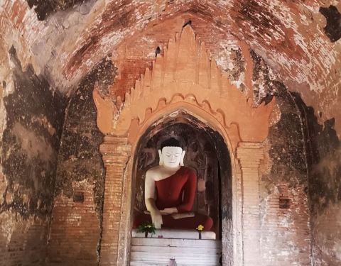 不过庙內的祭壇和地下的階砖,出奇的很现代化,就跟它的外表有点儿格格不入了此座高六十米的寺庙,可算是蒲甘最宏伟的寺庙之一!不过庙內的祭壇和地下的階砖,出奇的很现代化,就跟它的外表有点儿格格不入了!