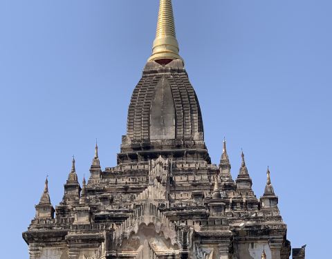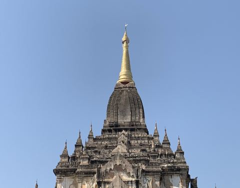 这座寺庙是我认为整体风景最好的一处。修建于11世纪,属于晚期建筑,高55米,是蒲甘第二高建筑修建于11世纪,属于晚期建筑,高55米,是蒲甘第二高建筑。葛道帕林的意思就是敬重的宝座。这座寺庙是我认为整体风景最好的一处。