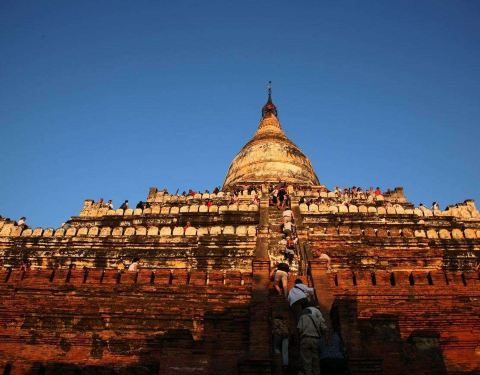 瑞山都塔是蒲甘允许游人攀登的较高佛塔。它是观赏万塔之城的很理想之地,可将万塔尽收眼底。每到日落时分都会非常拥挤,几乎是所有到蒲甘的游客欣赏日落的必去之地。瑞山都塔是一座五级台阶的优雅的白色金字塔式佛塔,这里是观看日出日落很好的场所。登顶以后,向四面望去,蒲甘的寺庙一览无遗。这种与来自世界各地的人们共同等待着某种神迹降临的感觉,非常奇妙而温暖,让人心醉。