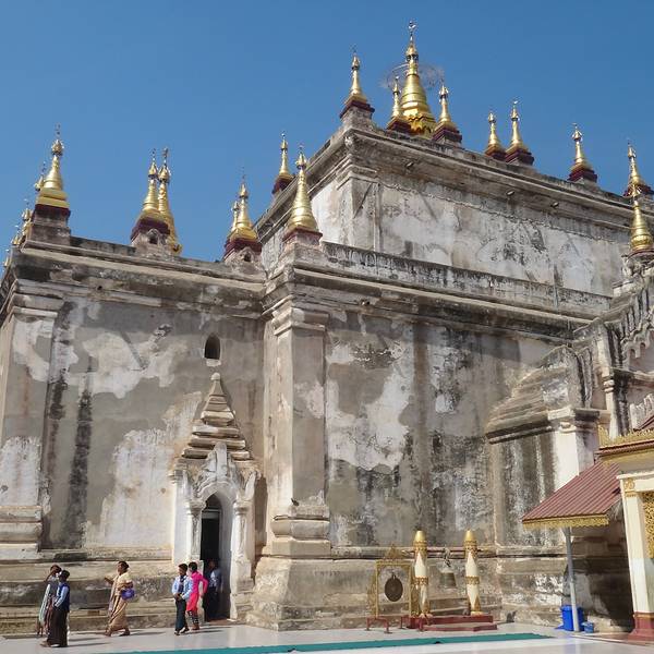 第一个参观的寺院是马努哈寺。它位于在明卡巴村的南边,由Manuha国王于1059年建造,他是被俘虏的孟族国王。寺庙里,正面是三尊巨大的佛像,而背面...用完早餐稍作调整后,前往旧蒲甘把昨天没有去过的佛塔走上一遍。